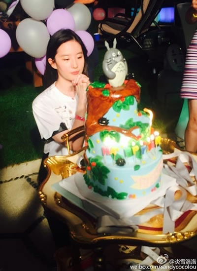 刘亦菲开心庆生(图片来源:炎雪洛洛微博)
