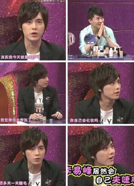 除了这个,最后再放送一个美妆节目,峰峰在里头完美掩饰了什么叫天生丽质难自弃,别人推荐了一堆防晒、隔离、粉底,他就带了1瓶粉底和1瓶遮瑕,然后用一种看外星人的眼神看着邻座,主持人何炅也给跪了,有颜就是任性啊!