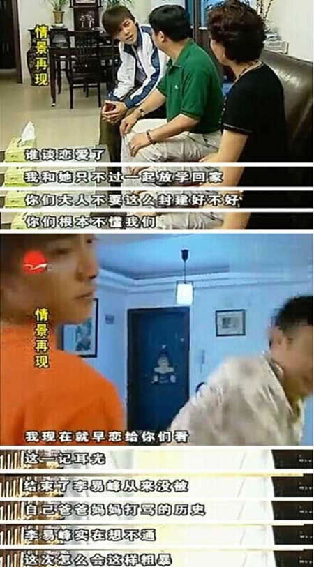 我们都知道他说14岁就初恋了嘛,然后初吻也给了初恋那个女孩子,然后其实峰峰早期还接受过采访,详细回忆了早恋经过,但是那时候他没有上《鲁豫有约》,也没有上《非常静距离》(观看),而是接受了一个上海话版“法制进行时”的采访,回忆了如何走出早恋危机,还被峰爸打了耳光,那真挚的表情真是闻者伤心,见者流泪,堪称最萌黑历史!