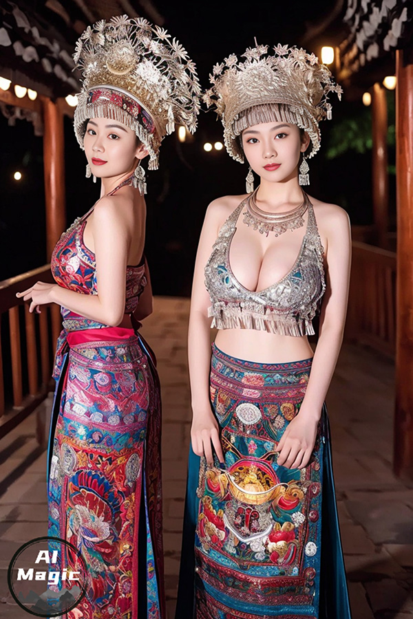AI魔法秀之盛装的苗族美女唯美图集美翻天