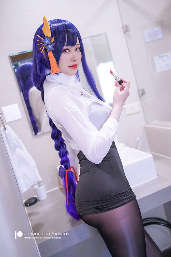 办公室紫发OL美女Arty亚缇黑丝白衣经典诱惑