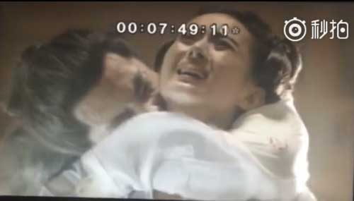 师父血吻小骨,咬脖子狂吻。在这个镜头中尊上血吻花千骨,而花千骨失血过多让观众揪心不已,尊上搂着小骨,两人在血污中拥吻的画面极富悲天悯人之感。