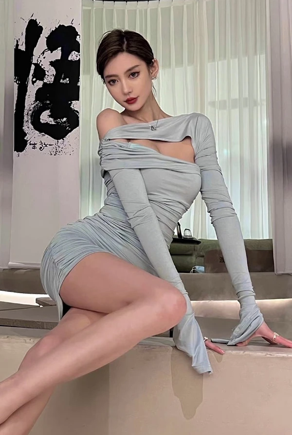 福利姬Naimi奶咪奶味小咪 深蓝暗纹吊带裙