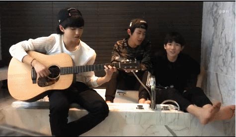 12月30日下午,TFBOYS组合队长王俊凯在微博分享了一段视频,艾特王源和易烊千玺道“满脑子只剩好想你了”。原来,视频中三小只坐在浴室里共同唱起了洗脑曲《好想你》,王俊凯弹吉他显帅气,王源和易烊千玺随着音乐摇摆,王源唱着唱着还一不留神滑进了浴缸,逗乐众人。