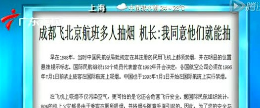 “航空公司是明令禁止航班上吸烟的。”昨日,成都本地一家航空公司资深空乘人员表示,飞机在高空飞行时机外空气稀薄,而客舱内是相对密封的,吸烟严重污染客舱环境,影响飞机内设备的正常运行,甚至容易发生火情,所以必须禁止吸烟。烟草中的尼古丁是一种中枢神经毒麻剂,它会使飞行员全身血管收缩,视力下降。不但如此,当飞机在万米高空飞行时,任何特殊情况导致的后果都是地面的3~4倍甚至更大,例如旅客偷偷在厕所吸烟,由于怕被乘务员发现,急忙将烟头扔进垃圾箱,未完全熄灭的烟头就很有可能引发火情,后果将不堪设想。