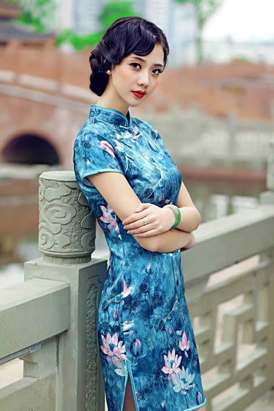 雨后荷塘青丝旗袍美人美江南