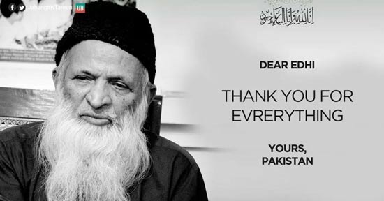 巴基斯坦总理谢里夫(NawazSharif)表示,“我们失去了一位伟大的英雄。”艾德希一生对贫困者和弱者充满了爱与同情,从不拒绝给予帮助。为了纪念他,巴基斯坦9日将在第一大城卡拉奇(Karachi)为艾德希举行国葬,“他值得。”谢里夫说。