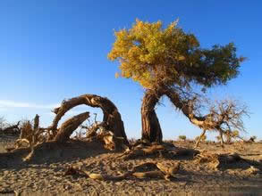 9月下旬到10月中旬,内蒙古额济纳的胡杨尽染金黄,蓝天、白云、金色胡杨光影交错成一幅幅绝美图画。神奇的胡杨活着千年不死、死后千年不倒、倒后千年不朽……它灿烂、倔强、命运多舛而引人哲思,成为一种精神被世人膜拜。