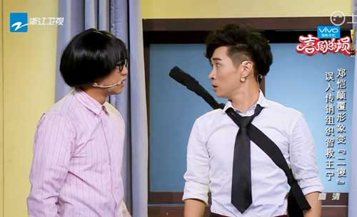 本周六晚(10月29日)浙江卫视《喜剧总动员》第三赛段第二场积分赛节目中,四组嘉宾为抢占积分先机,纷纷拿出杀手锏。上周暂列第一的袁姗姗、宋小宝将新编牛郎织女的爱情故事;李咏牵手宋宁,将挤兑于谦进行到底;郑恺任性扮傻,与兄弟王宁大战传销组织,朱雨辰佳佳将科幻照进喜剧,挑战即兴演出!其中郑恺+王宁两人祭出杀手锏,带来传销主题作品《拿什么拯救你,我的兄弟》。郑恺解放天性,带上假发与粗框眼镜任性扮傻,饰演第一次从农村来到城市的打工者大恺,在寻找并解救误入传销组织的发小王宁的过程中,与传销组织斗智斗勇。两人在作品中展十八般武艺,大跳魔性舞蹈,吹笛等才艺更是信手拈来,令观众捧腹。一起来欣赏喜剧总动员郑恺王宁小品《拿什么拯救你,我的兄弟》现场视频吧!