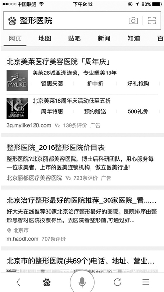受“魏则西事件”影响,莆田系医院从百度排行榜上销声匿迹了不到半年,如今又有重新打鼓另开张的迹象。北京青年报记者近日调查发现,莆田系医院又杀回医疗竞争市场,只是这一次,莆田系医院更换了推广手段,打出“医美分期”的招牌,以贷款美容的形式再次打入百度搜索首页。