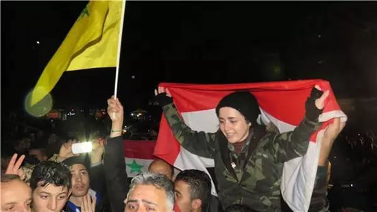 12月12日,在叙利亚阿勒颇,民众庆祝叙利亚政府军的胜利。