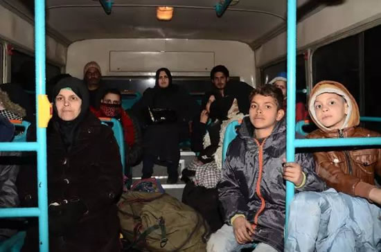 11月27日,难民乘坐公交车从叙利亚城市阿勒颇东部撤离。