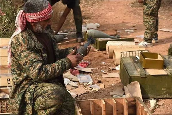12月11日,在叙利亚北部重镇阿勒颇南部一处营地,亲叙政府民兵武装“沙漠之鹰”向反政府武装控制区发射炮弹。