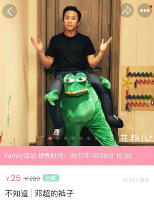 【孙俪拍卖老公爱裤】近日,孙俪在微博上晒出自家的特色裤子,并发文称:“我要把这条裤子给卖了,有人要吗?体积太大太占地方,谁想要就到我的等花开杂货铺去看看,不贵”。网友们纷纷把目光转向了为此次裤子担当模特的邓超,照片中,他一脸自信的样子非常搞笑。这张照片可以追溯到邓超万圣节发的微博,当时他很自豪地向网友炫耀给孩子买的变装礼物。刚刚过去不到两个月的时间,这套服装就被孙俪摆到了自己卖闲置物品的“等花开杂货铺”里,而且开价十分实惠,但显然,看到照片的邓超心情复杂,不停留言回复说:“这条裤子是我的挚爱好嘛,为什么这样对我”、“谁买我永远比她他它多一毛”、“起码和我商量一下吧”、“搞事情是吧”。