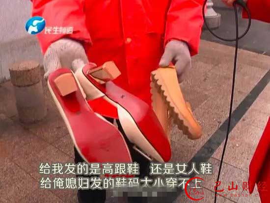 二七区的环卫工人们见到记者时,纷纷抱怨:“当时大家都认为是发棉鞋,还报了各自的鞋码,没想到结果是这样”“不论男女,一律发的是女士鞋”“女士高跟鞋,环卫工人穿着咋扫地?”“鞋码混乱,根本没法穿”“大冬天发单鞋,能穿吗?”