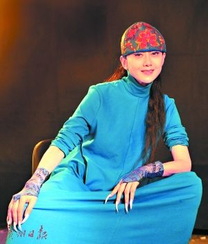 杨丽萍说:“手是我钻研孔雀舞的切入口,有了指甲之后,整只手在动作上,被分成了手腕、手掌、手指、指甲四个环节。我的手以剪影方式呈现,造型就很像一只孔雀头。”