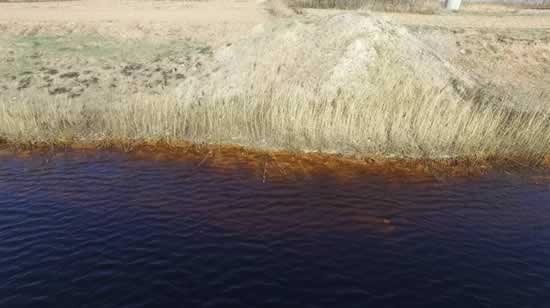 状态:渗坑废水为锈红色,酸性,废水PH值约为1。