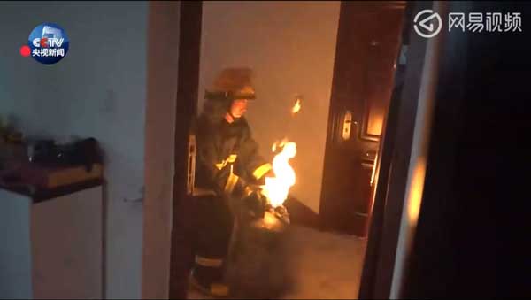 近日,在陕西省汉中市汉台区一栋居民楼三楼住户的厨房煤气罐着火。消防人员赶到发现,煤气罐向外喷射的火焰足有半米多高,由于煤气罐阀门已经烧坏无法关闭,所以只能等煤气罐中的气体燃烧完毕。但是随着煤气罐温度不断升高,发生危险的几率也在增大。危急时刻,消防战士周鹏家立刻将着火的煤气罐抬了出来,并一直抱到楼下空旷处。等候在现场的另外一组消防官兵立即用水枪对煤气罐进行降温冷却处理,经过一番努力,险情终于被排除。