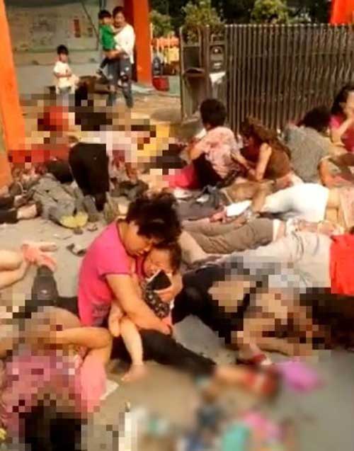 幼儿园附近一家商户的老板介绍说,大概5点左右,听见“哐”一声,出门后发现是距离自己不足一百米的幼儿园门口发生了爆炸。据他介绍,当时正是家长们接孩子放学的时候,人比较多。目击者发来的现场视频显示,爆炸发生后,疑似在幼儿园门口位置,有多名家长及幼儿躺倒在地,现场物品散落一地,多人身上有血迹。北青报记者注意到,受爆炸事件影响,一些人衣不蔽体,且多人身上有明显外伤。