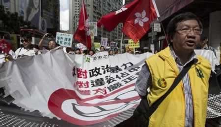 几人在交谈之后,便将一些标语牌分发路过的市民。当人群越聚越多时,这些人就在后面不时高呼“我要真普选”、“鸠呜、鸠呜”的口号,但却并不走向前面。大约过了1小时,当人潮开始不断在西洋菜南街行人道上来回走动时,记者发现这几个男子突然不见了。显然,这是他们的策略:先煽动起人群的情绪,然后,就躲在幕后遥控操纵。
