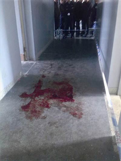宿舍的走廊上还留有大摊血迹