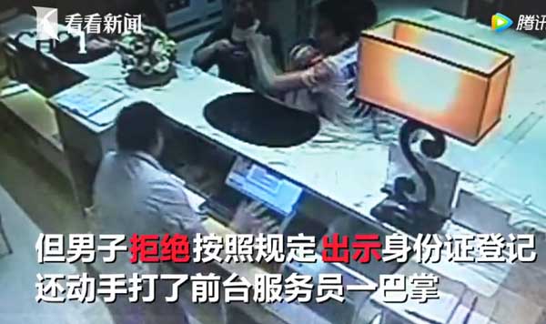 原标题:视频|男子拒出示身份证强行开房还扇服务员耳光:我是会员为何要登记?