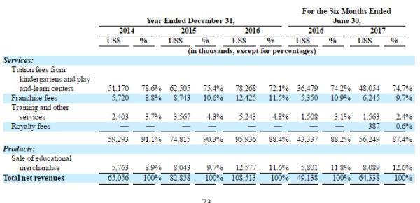 根据招股书,红黄蓝自称是中国最大的幼儿教育服务提供商,截至2017年6月30日,业务已经遍及中国超过30个省份,业务包括开办幼儿园、亲子中心(play-and-learn centers)以及提供家庭教育产品,同时,红黄蓝也在开发教育课程,并提供幼儿园运营解决方案。