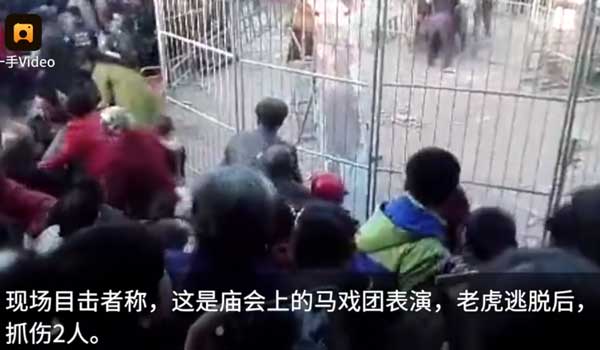 网上爆料称,25日,山西临汾一个马戏团的老虎在表演过程中,疑似受刺激发狂冲破牢笼,人群四散逃离现场,场面一度混乱。据现场群众介绍,一大人和一名小孩被老虎抓伤。此事,随即引起网民的广泛关注。