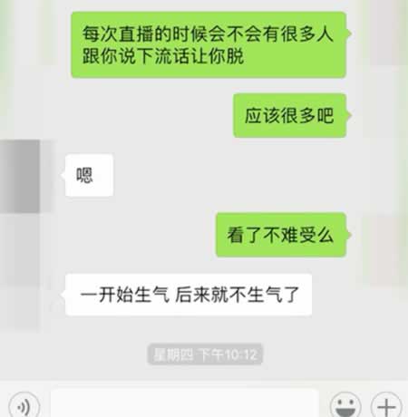 知情人士还提供了与一名自称2005年出生的主播的聊天记录。