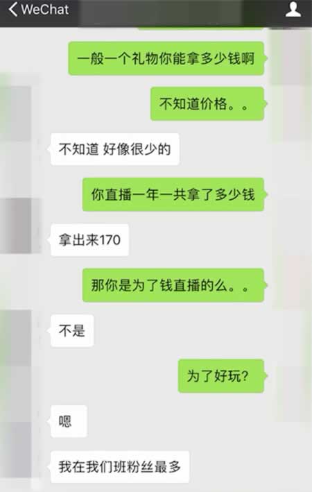 该主播称“裸播”不为钱,就是“好玩”,“我在我们班粉丝最多”。
