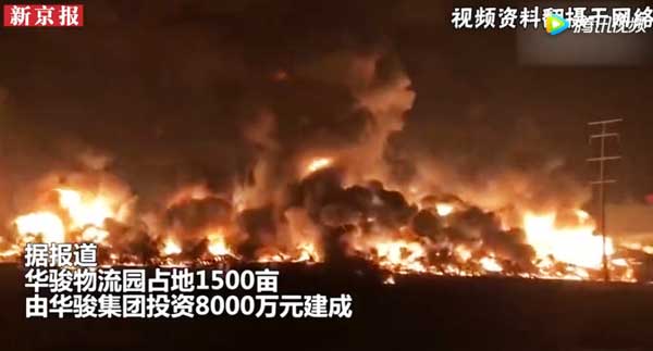实拍青岛即墨华俊物流园突发火灾现场视频