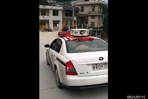 实拍湖南新化陈建湘抓捕中警车进村播放悬赏公告现场视频