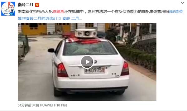 实拍湖南新化陈建湘抓捕中 警车进村播放悬赏公告征集线索