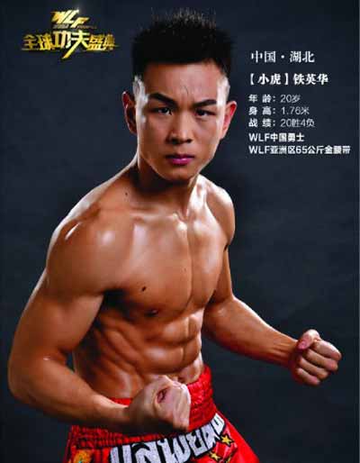 2015《武林风》“全球功夫盛典”1月31日在重庆市江南体育馆举行的总决赛中,铁英华首轮就战胜了被大家广泛看好并视为夺冠热门之一的肖恩奥布朗斯基,半决赛更是KO了韩国的新星金东秀,最终铁英华拿下了本届的冠军。“小虎”铁英华勇夺“世界功夫之王”称号。