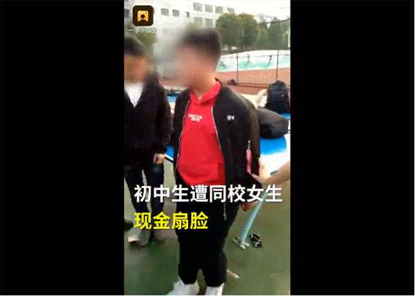 4月1日,一则疑似学生受辱的短视频在黄山市民微信朋友圈疯传。时长仅10秒的视频中,一名男生靠在乒乓球桌子旁,一名女生手持一沓百元钞票,连续抽打男生脸部,男生则始终不敢反抗。抽打男生同时,这名女生用当地方言喧嚣几句,旁边另一名女生也跟着帮腔。最后,女生手中钞票在最后一次抽打中散落一地。 2日上午,黄山区公安在线在微博中发消息证实了视频的真实性。据警方通报,4月1日晚9时许,接黄山二中校方报警,称视频反映内容属实,涉及该校学生。甘棠派出所会同校方第一时间启动调查取证工作。目前,公安机关已受案,将严格依法查处侵害未成年人案件,维护良好的校园秩序。有关情况,将适时向社会通报。