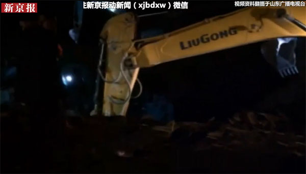 山东维坊5岁男童坠百米深井被卡救援队救援现场视频截图