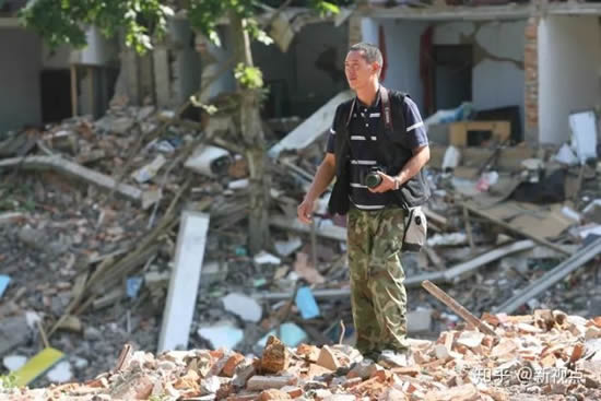 《大河报》特稿记者朱长振在震区采访。图片由受访者提供