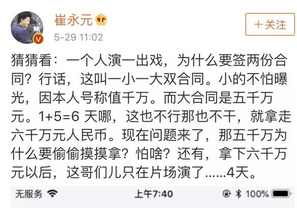 若崔永元所爆料的合同为真,1000万元+5000万元的两份合同究竟涉及逃税多少钱?