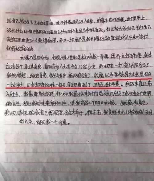 庆阳跳楼女生控诉书 最后说,“我只求,能还我一个公道”。