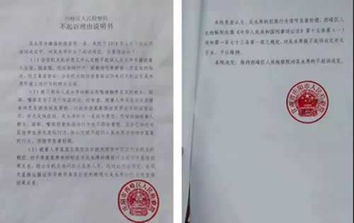 收到不起诉决定书后,李明向庆阳市人民检察院申诉。2018年5月18日,庆阳市人民检察院复查决定维持西峰区人民检察院对吴某某的不起诉决定。