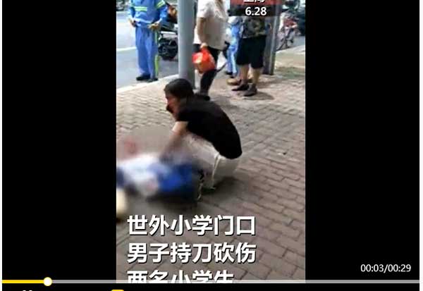 实拍上海世外小学门口男子持刀砍人视频