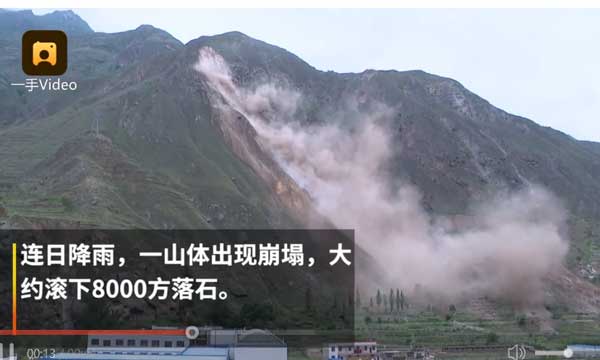 实拍甘肃舟曲暴雨致山体发生崩塌现场视频