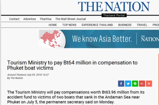 (原标题:泰国普吉游船倾覆事故 泰媒披露泰国旅游局赔偿方案)