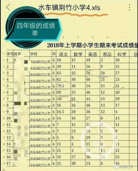 该镇一名分管教育的官员介绍,6月底,该镇举行了全镇统考,考完后,荆竹小学学生家长询问老师孩子的成绩,老师便将成绩单上传至微信群中。这份成绩单还没经过复核,有不准确的地方,真实成绩会有变化,“有变化但变化不大,大体上还是准确的。”