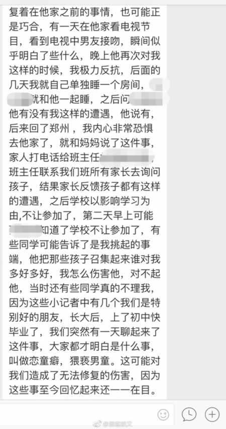 @乔凯文:收到三个人的联名举报信,他们在年幼时曾被当地电视台的少儿节目某制片人猥亵。此人如今已身居高位,且其工作性质仍能经常接触到儿童。