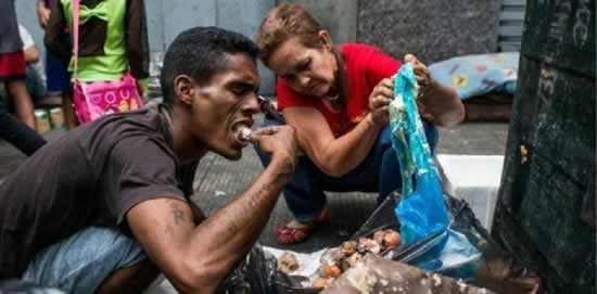 食品匮乏,超市的货架总是空空荡荡。80%的人一天勉强只能吃上一顿饭,委内瑞拉人平均体重2017年下降了11公斤,2016年下降了6公斤。饥饿的市民甚至不得不去捡拾垃圾。