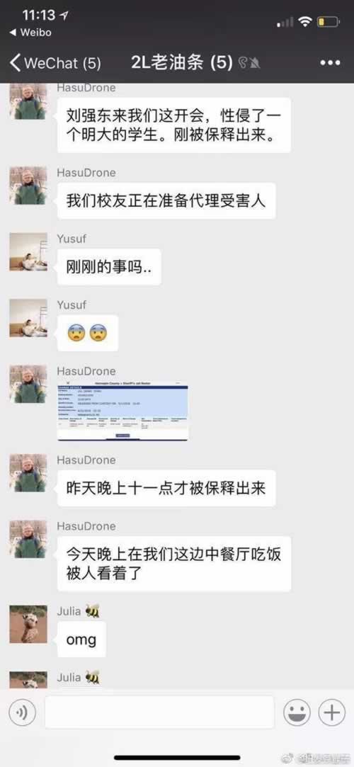 网传刘强东在美国明尼苏达性侵一女大学生被捕