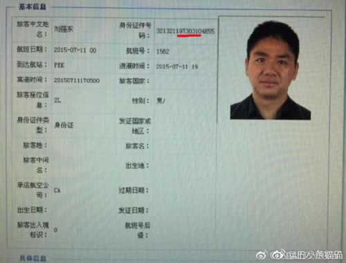 网友@单大毛师傅:转:一名叫做刘强东,且与京东老板刘强东同一出生年月日的男子,因为性侵在美国明尼苏达州被捕,今天刚刚被保释出来。
