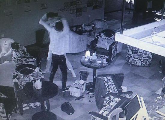 监控视频显示,双方扭打在一起。