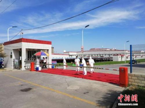 资料图:工作人员在向地面倾倒消毒液。 刘鹏 摄